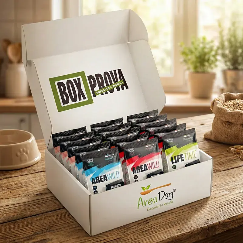 La Box Prova di Pressato a Freddo® Area-Dog è la soluzione ideale per chi desidera testare nuove referenze. Perfetta per fare un regalo originale o iniziare il proprio percorso alimentare testando le nostre ricette pressate a freddo.