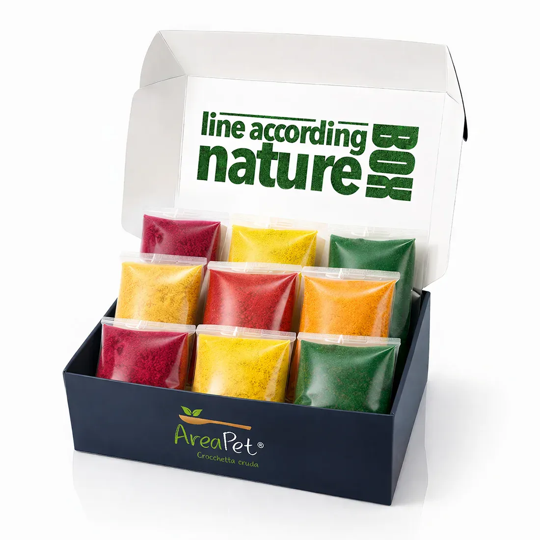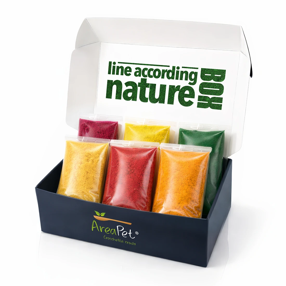 Box Prova L.A.N. racchiude tutte le referenze in polvere della linea Line According Nature in pratici formati da 50g, ideali per scoprire ogni materia prima in modo semplice e senza sprechi.