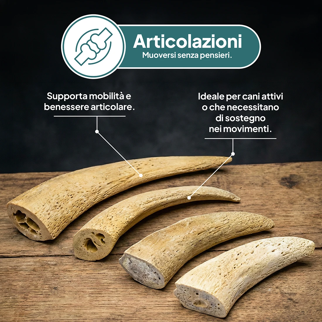 Il Cuore di Corno di Bufalo è composto prevalentemente da tessuto osseo spugnoso o midollare, che lo rende meno duro rispetto allo strato esterno di cheratina. Questo nucleo interno è una preziosa fonte naturale di minerali come calcio e fosforo, oltre a proteine benefiche per la salute. Grazie alla sua consistenza morbida e porosa, tende a consumarsi delicatamente, riducendo il rischio di schegge appuntite. Questo lo rende particolarmente sicuro e ideale per una masticazione senza rischi.