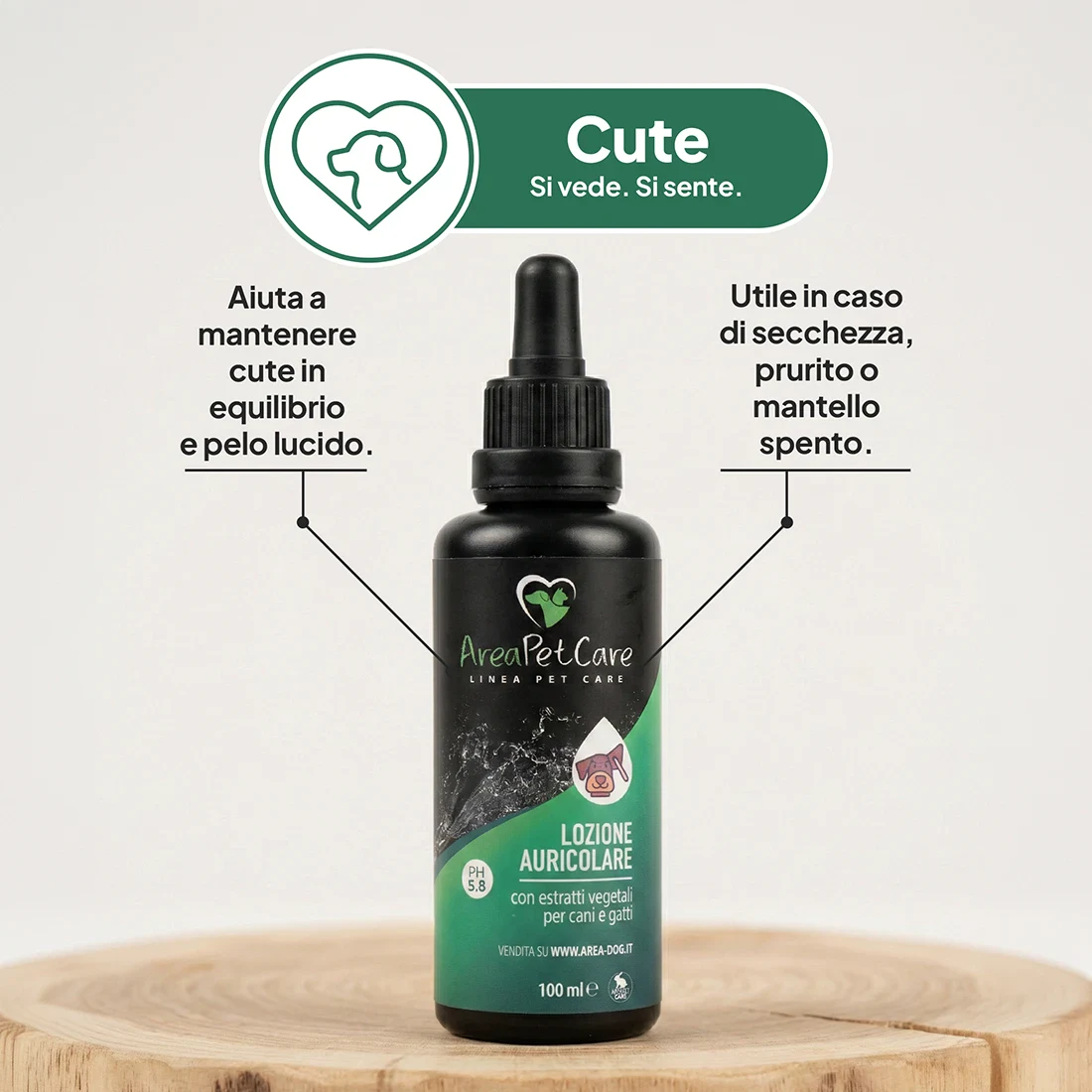 I pet hanno una cute più delicata della nostra e con un PH più elevato. Un prodotto sbagliato potrebbe causare di irritazioni e secchezza cutanea. In particolare, potrebbe danneggiare il pelo facendogli perdere di morbidezza e luminosità. Nel rispetto della nostra filosofia, abbiamo creato la linea di prodotti Area Pet-Care. Una linea pensata per la cura e la protezione della cute e del pelo dei nostri pet. Made in Italy.
