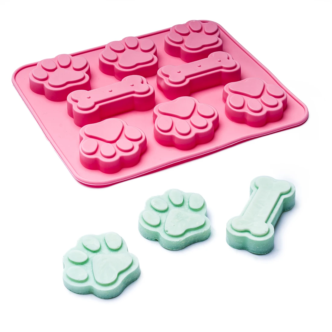 Stampo in silicone alimentare per merende Pet Bakery. Ideale per i preparati per cani, gatti & human friendly. Resistente e flessibile, adatto sia alla cottura in forno che al congelamento.